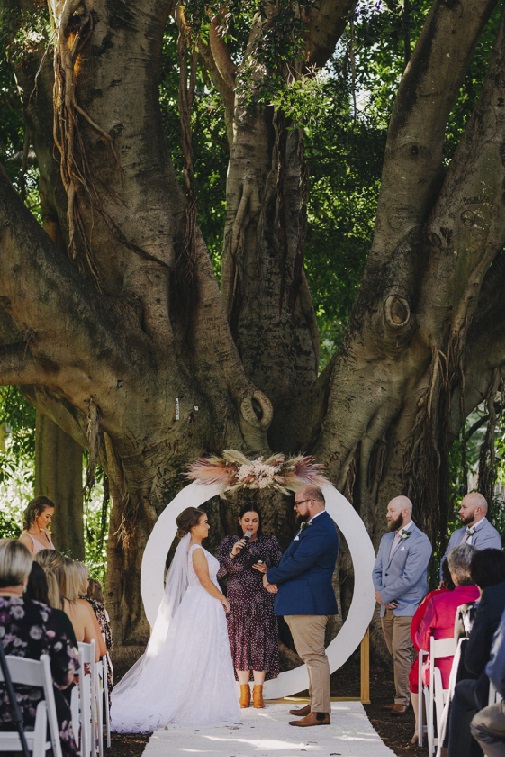 We love the contrast of our white circular arbour against the amazing Fig Tree in the backdrop. The tree also did a great job of shading the 100+ guest list throughout the ceremony.