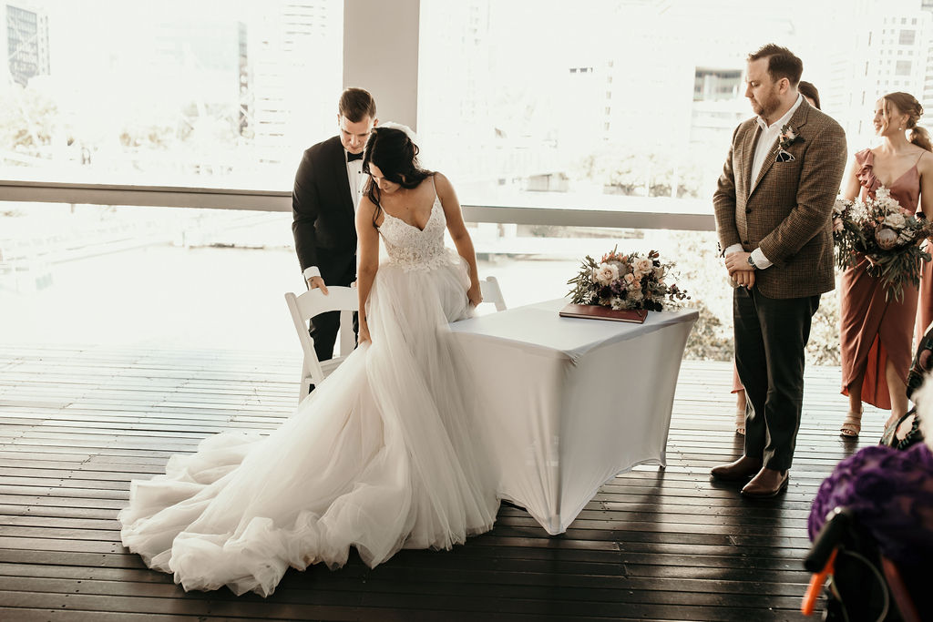Our sweet couple planned this incredible wedding within a couple of months, with their ceremony taking place at the rooftop Terrace of QAGOMA, and their reception taking place at the watermall function space within the same building.
