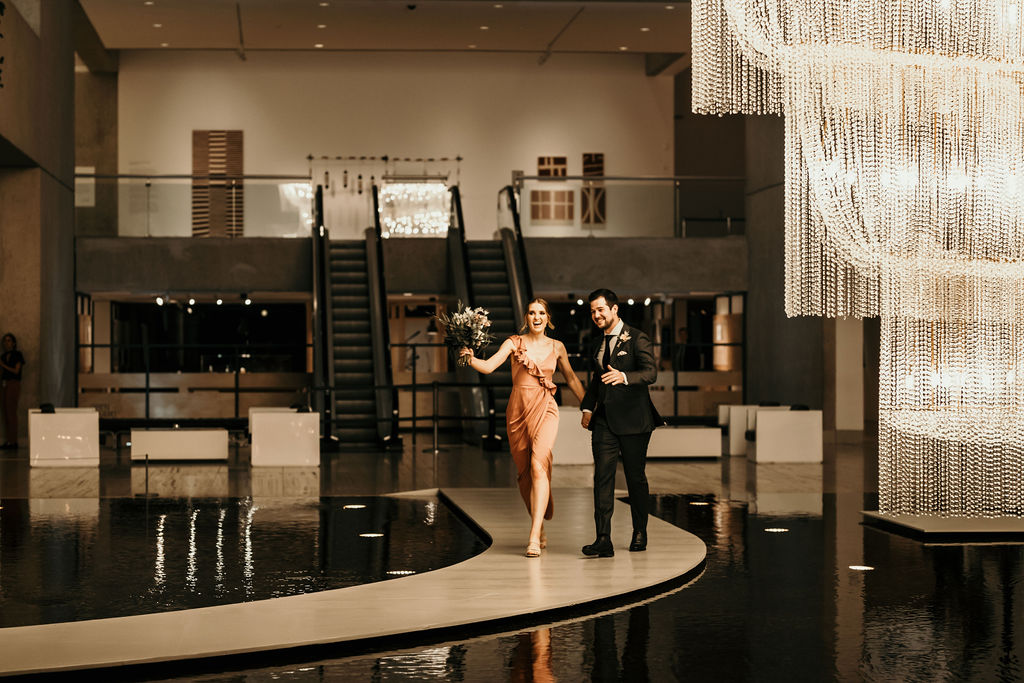After some fun wedding photos around the Queensland Art Gallery the couple and their bridal party made a fabulous entrance to their reception to the delight of their guests.