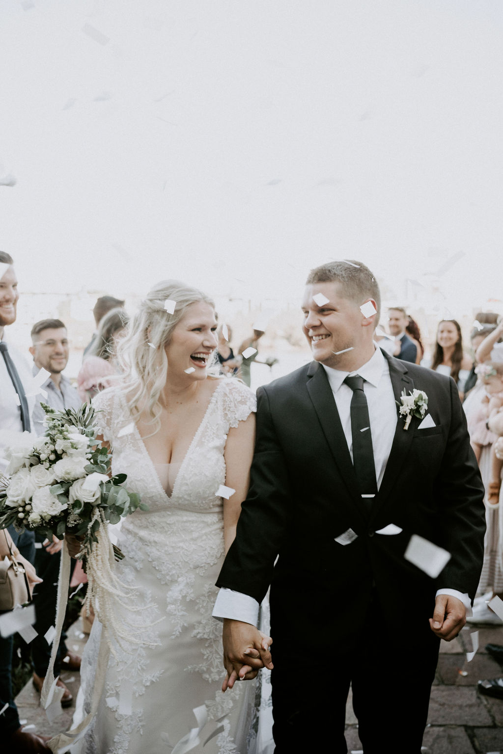 We love a biodegradable confetti shower. Talk to us about adding bio confetti to your wedding ceremony setup. A confetti shower is such a fun way to walk back down the aisle together, plus the bio confetti floats in the air longer creating amazing photo opportunities like these!