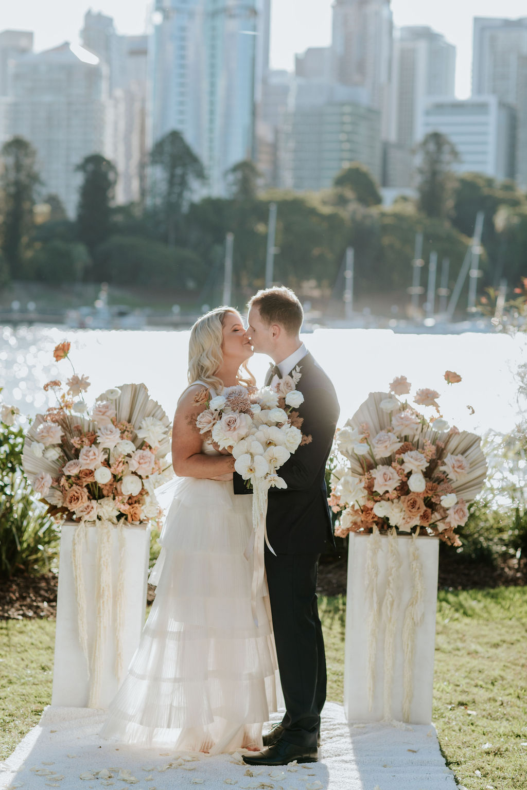 This couple opted for a simple and elegant setting at a spot that was special to them in Kangaroo Point, with the Brisbane River in the backdrop.