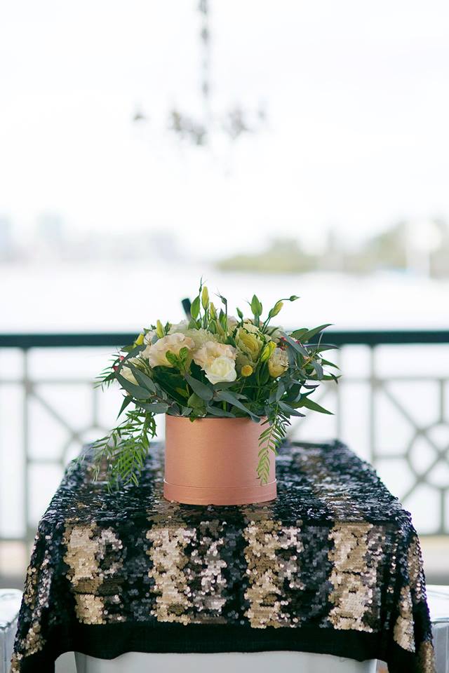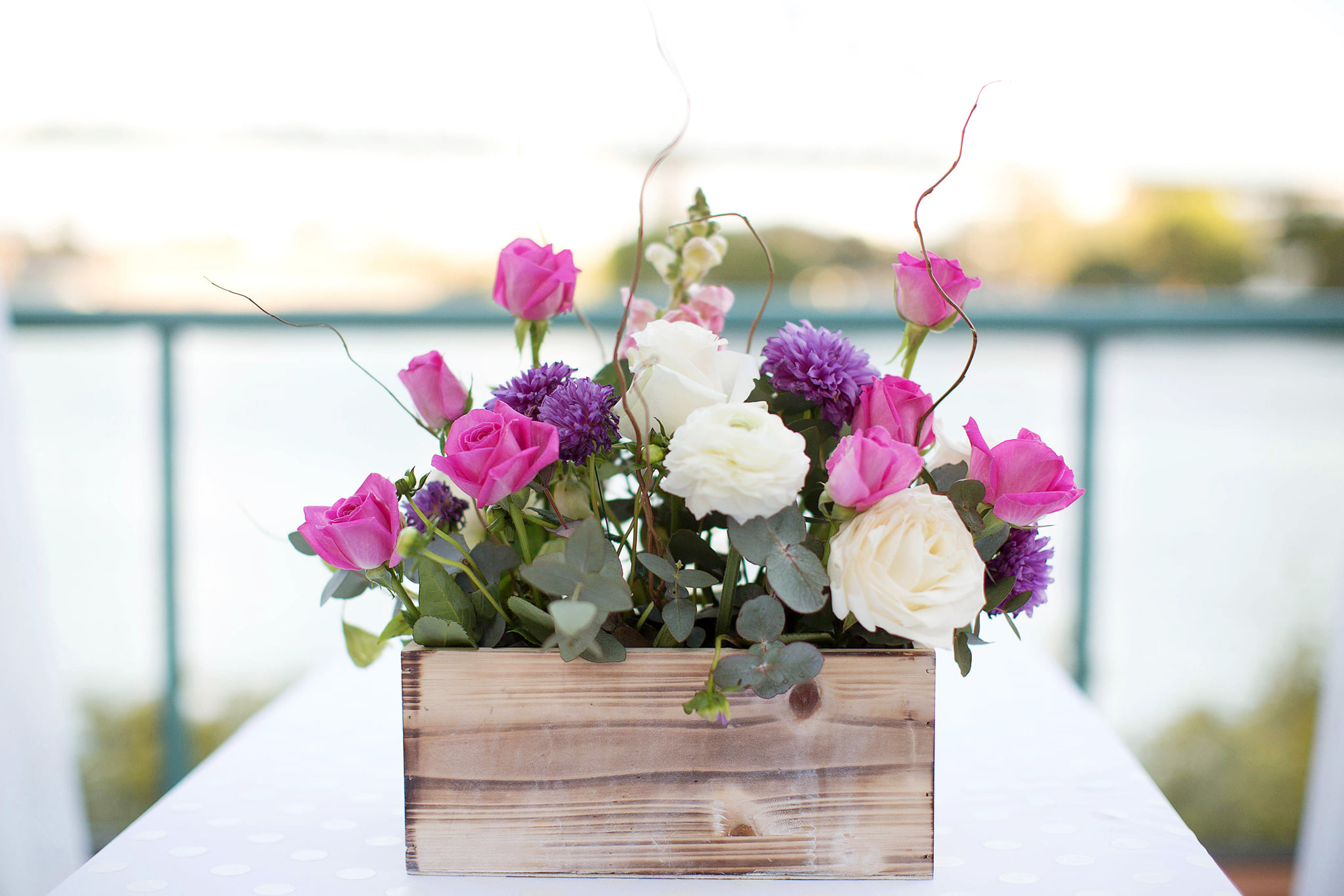 We carefully selected these boxed flowers to compliment the peachy tones of our Newstead Rotunda proposal setting.