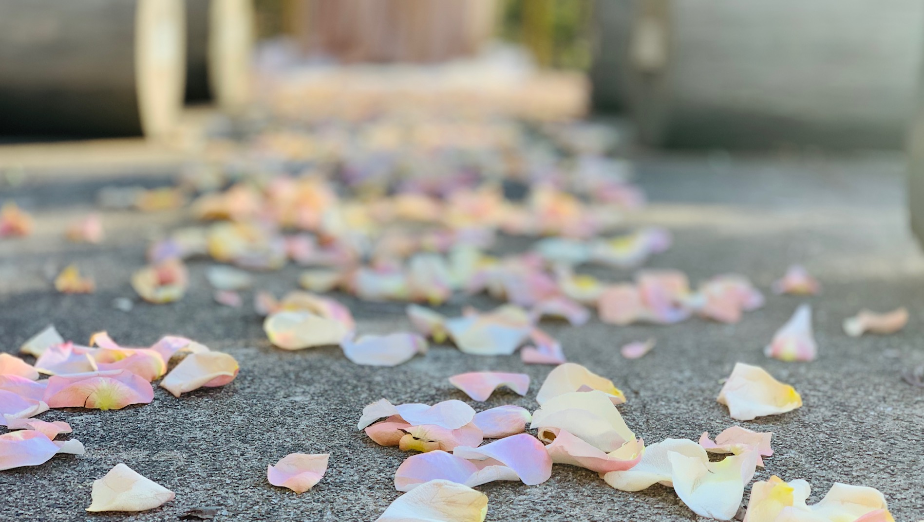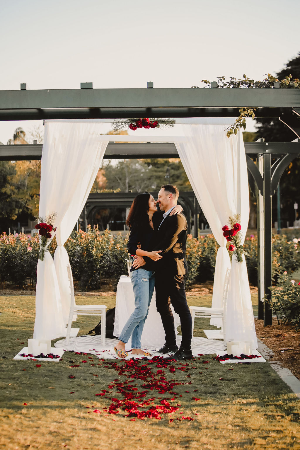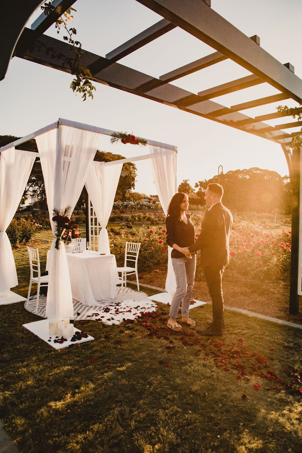 For this proposal setting we created an aisle of fresh flower petals, leading to a gorgeous setting for him to get down on one knee and pop the special question.