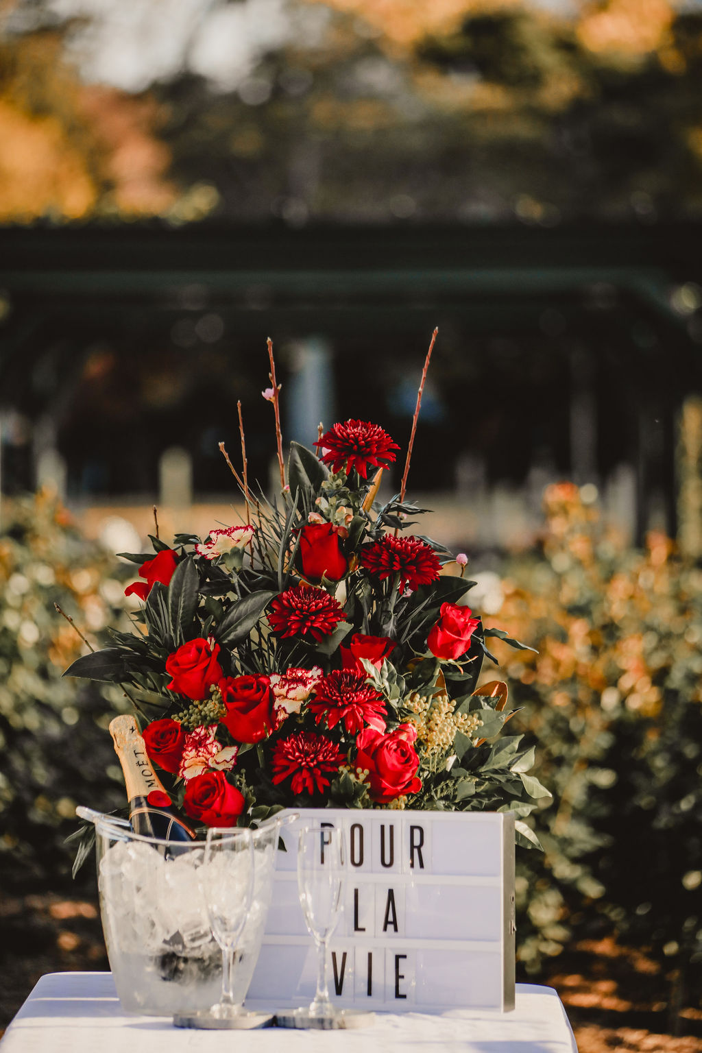 With a brief for a romantically styled proposal with red fresh floral arrangements, we combined our luxurious setup with rose gold styling for the ultimate luxe setting.