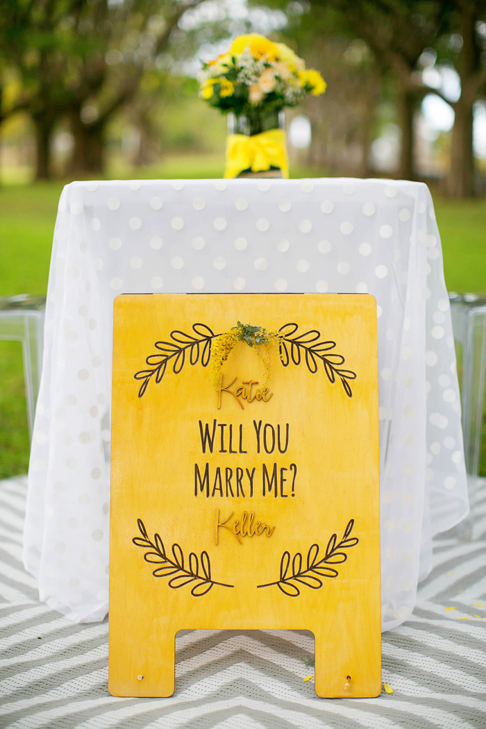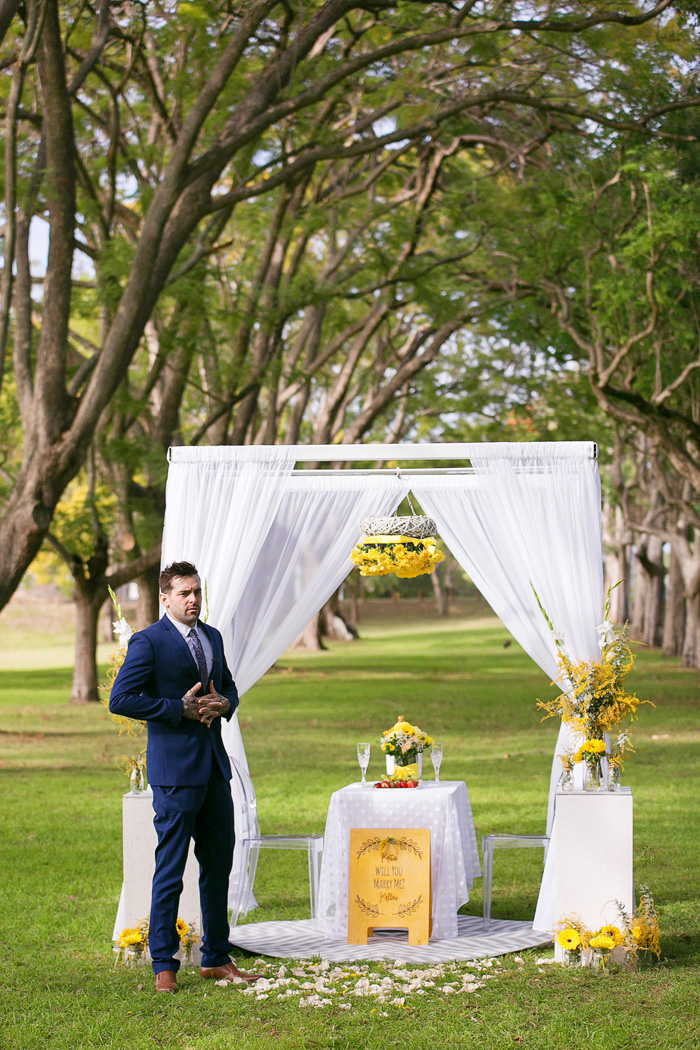 This gent opted for a glamorous setting with an abundance of gorgeous fresh yellow flowers – her favourite colour!
