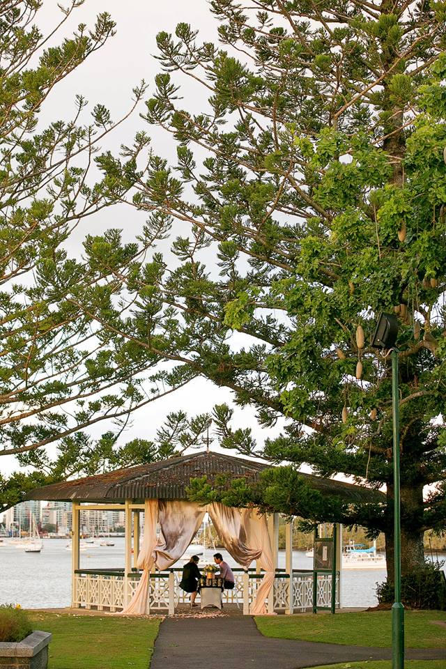But little did I know I was in for such an amazing surprise! We arrived at Brisbane’s New Farm Park as the sun was beginning to set and I instantly saw this beautiful rotunda all lit up and I said to Armand there must be a wedding going on.