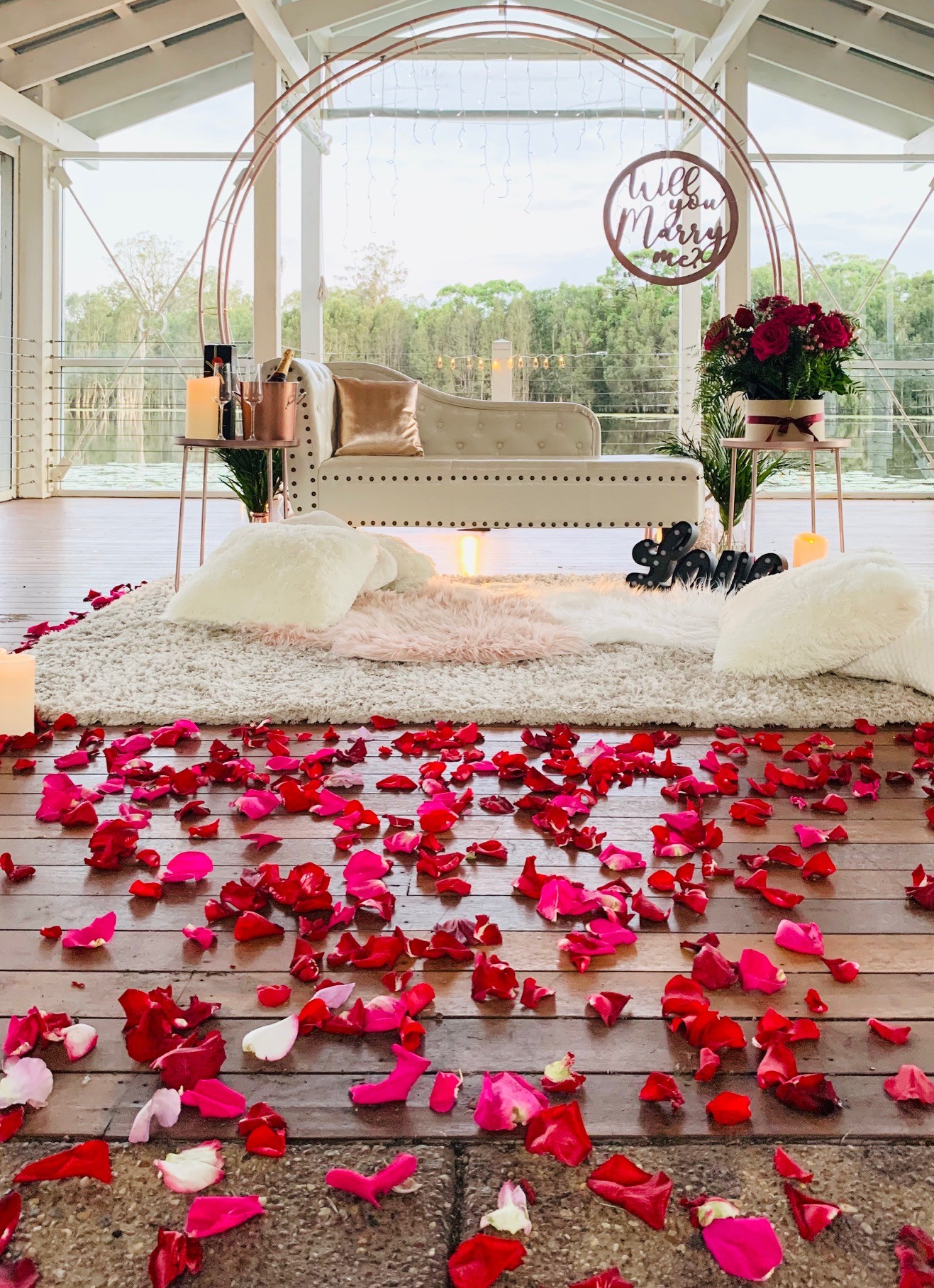 We love assisting our soon to be engaged proposers by creating wow factor by surprising their loved one with a gorgeous, styled setting for your proposal.