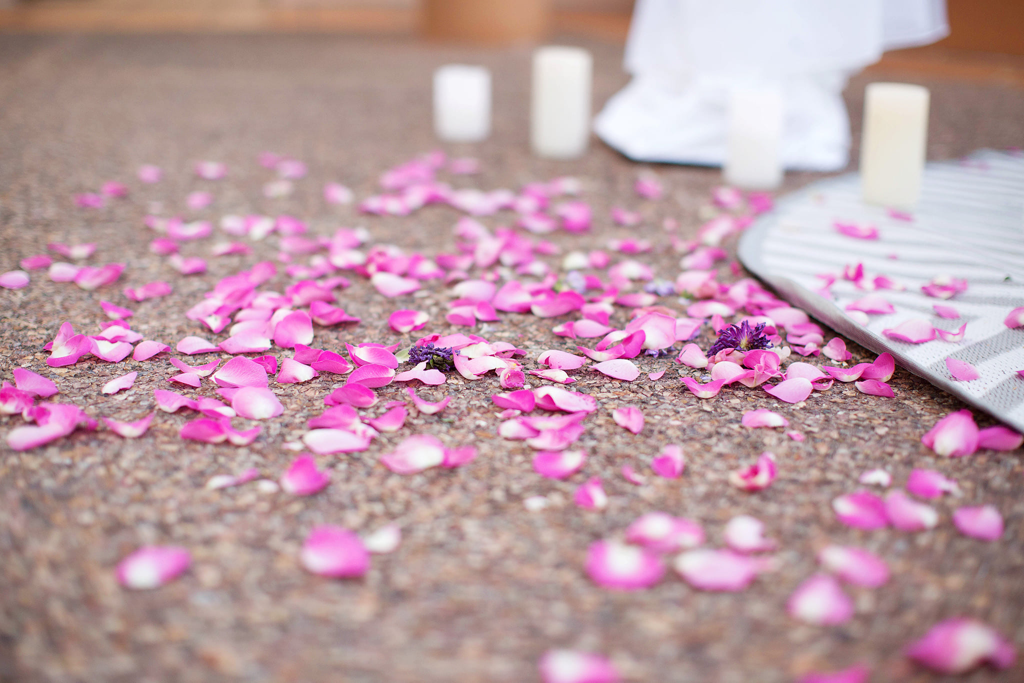 For this sunset proposal, we created a beautiful light filled elegant space with an abundance of fresh pink roses and soft pink carnations, lining the aisle of fresh rose petals to lead them to their very special moment.